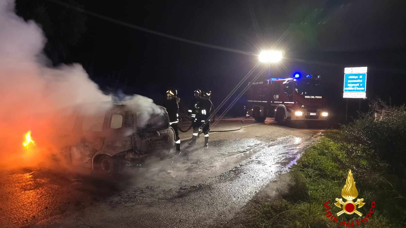 Paura nella notte a Nuoro. La squadra 1A della sede centrale dei Vigili del fuoco locali è intervenuta ieri sera alle 23 sulla ss389 Var, poco dopo lo svincolo per Orani, per domare un incendio che ha completamente distrutto una Fiat Panda.