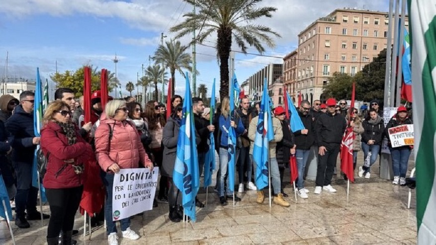 Solo 7 euro di aumento, riduzione del 50% delle ore di permesso, progressivo azzeramento dell’indennità di malattia, taglio da 180 a 120 giorni del periodo massimo di assenza per malattia oltre il quale scatta il licenziamento, eliminazione degli scatti di anzianità automatici. Sono questi i punti contestati dai lavoratori dei call center in protesta questa mattina a Cagliari per il nuovo contratto che regola condizioni e futuro di circa 200 addetti della sede locale di CallCenterOne